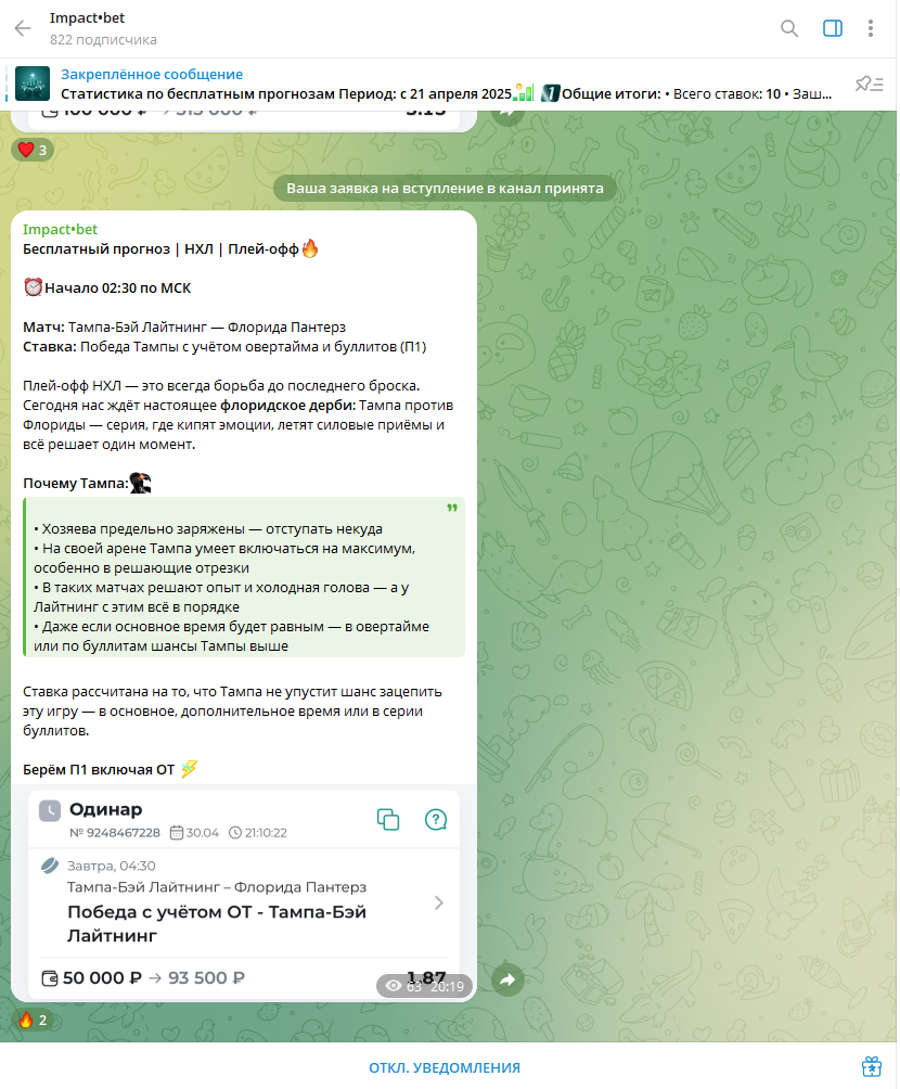 • Бесплатные ставки — публикуются в Telegram-канале для всех подписчиков